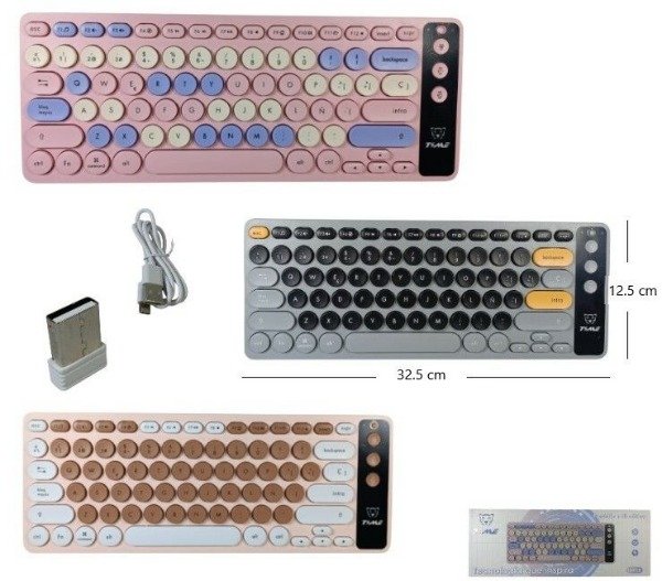 Es un dispositivo compacto y versátil con doble conexión (2.4GHz y Bluetooth), recargable por USB-C, con diseño español (incluye "Ñ"), ideal para alternar entre múltiples dispositivos (PCs, tablets, smartphones), ofreciendo escritura fluida y silenciosa con autonomía de hasta 30 días