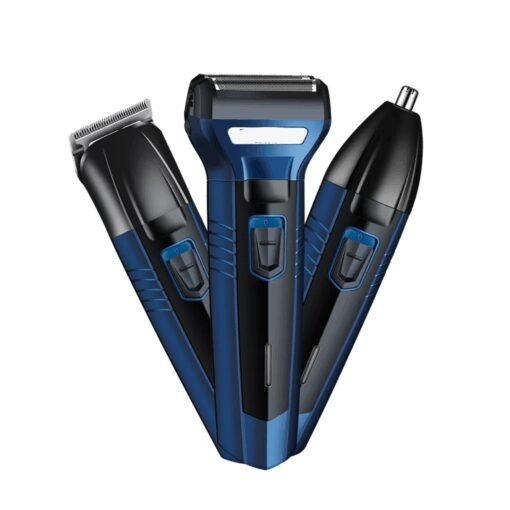 Máquina Corta Barba 3 en 1, inalámbrica recargable por USB. Incluye 3 cabezales, 4 peines, cepillo y aceite. Ideal para barba, cabello, nariz y orejas.