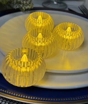 PORTA VELA + VELA LED BAJO 6X3.5CM: Elegancia y calidez en tu mesa Ideal para usar como centro de mesa, este porta vela con vela LED brinda un ambiente acogedor sin preocuparte por el fuego. Con un diámetro de 6 cm y una altura de 3.5 cm aproximadamente, es compacto y versátil para cualquier espacio.