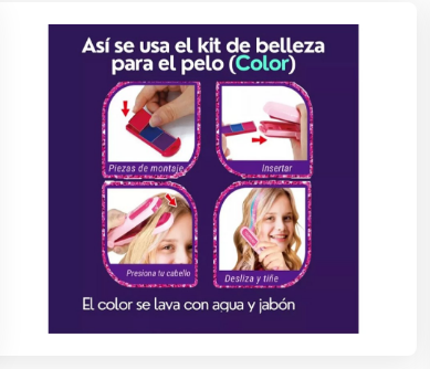 Incluye: Peine, aplicador, 2 hebillas y 6 colores