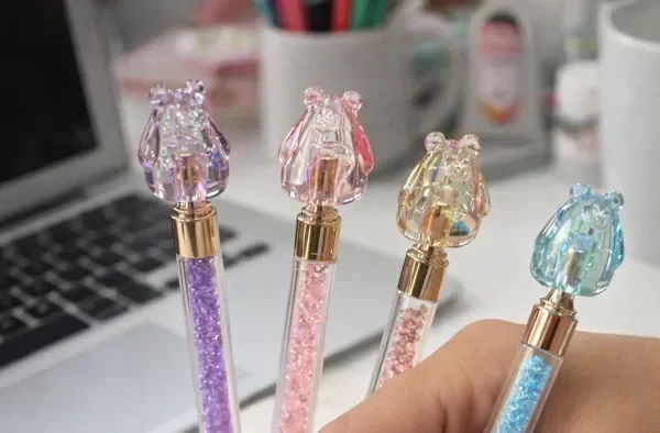 Descubrí la birome perfecta para destacar en cada escritura. Su cuerpo está adornado con brillantes cristalitos que reflejan la luz con delicadeza, mientras que el encantador adorno de capibara aporta un toque único y cálido.