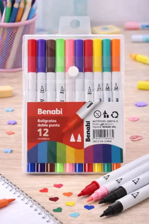 Descubrí el set de 12 bolígrafos doble punta Benabi, ideales para estudiantes, profesionales y amantes de la papelería que buscan precisión y comodidad. Cada bolígrafo ofrece dos grosores para trazos finos y gruesos, facilitando notas y dibujos con estilo.