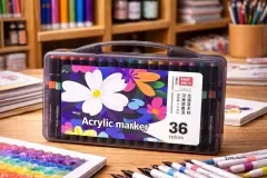 SET DE 36 MARCADORES ACRÍLICOS CON PUNTA PINCEL Descubrí el set ideal para tus proyectos creativos. Estos marcadores acrílicos combinan la versatilidad del acrílico con la practicidad de un marcador, perfectos para usar sobre papel, madera, piedra, cerámica, tela y más. Su punta pincel te permite realizar detalles precisos, complementando tus trabajos con pinceles tradicionales. Incluye estuche valijita para fácil transporte y almacenamiento.