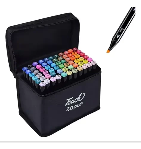 ¡Dale vida a tus proyectos creativos con nuestro set de 80 marcadores de colores! Cada marcador cuenta con doble punta (una fina y una gruesa), lo que te permitirá realizar trazos precisos o amplios sin complicaciones.
