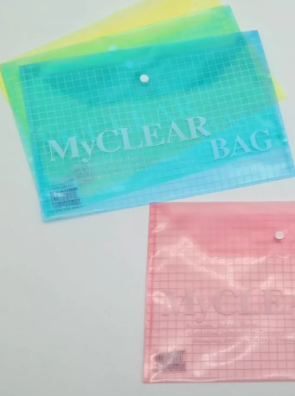 ¡Organiza tu material de manera práctica con nuestro SOBRE PVC CON BOTON CUADRILLE! Este sobre es ideal para mantener tus documentos seguros y ordenados.