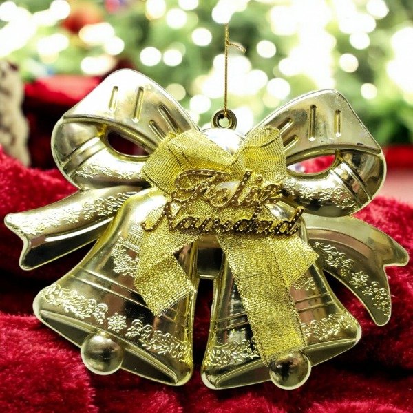 2 Media Campana Oro Con Moño 16x20cm