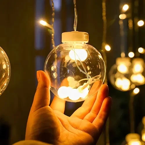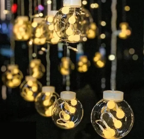Guirnalda Cortina Esferas LED 300x60cm: la iluminación perfecta para ambientar tus espacios con calidez y estilo.