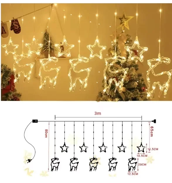Con medidas aproximadas de 2.5 metros de largo, 50 cm corto y 80 cm largo, esta guirnalda es perfecta para decorar ambientes cálidos y acogedores. Incluye enchufe para un uso cómodo y seguro.