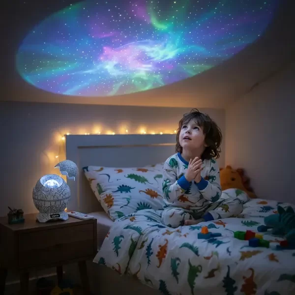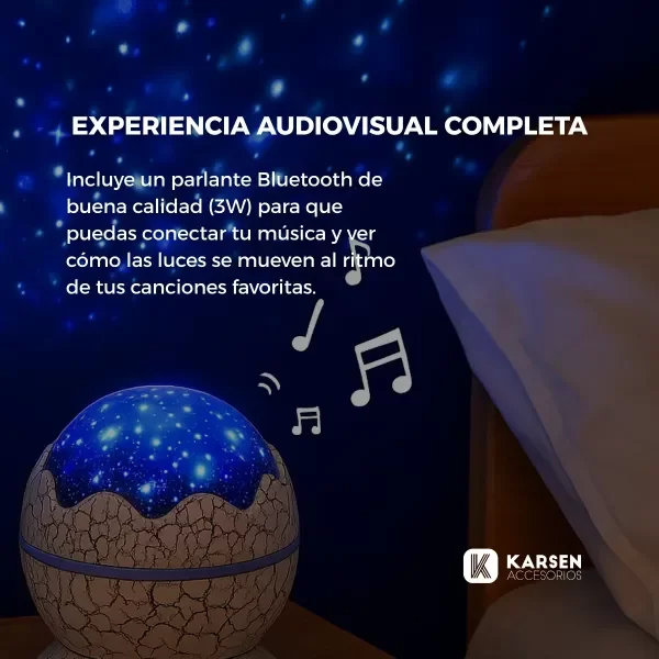 Lampara Velador Luz De Noche Karsen Proyector Parlante Bluetooth Huevo Dinosaurio Nebulosa Rgb Galaxia Estrellas Ruido Blanco