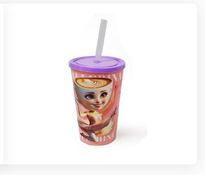 Vaso con tapa y sorbete.