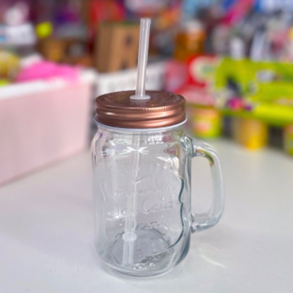 VASO JARRO CON TAPA Y SORBETE (5644): Elegancia y Funcionalidad en Cada Sorbo Disfrutá de tus bebidas favoritas con este vaso jarro de vidrio, equipado con tapa cobre y sorbete. Ideal para mantener tus bebidas frescas y evitar derrames.