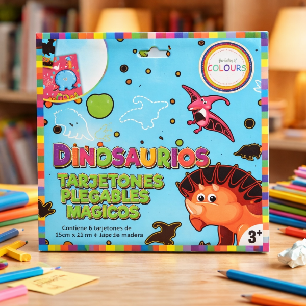 Papel Mágico Tarjetones Plegable DINOS 6 Hojas Con 1 Lápiz 7169