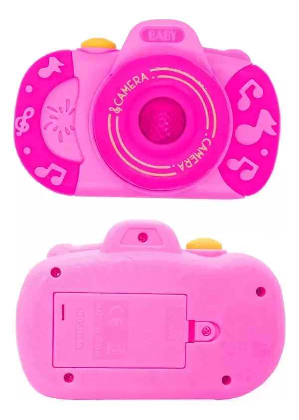 Divertida cámara infantil diseñada para estimular los sentidos y la imaginación de los más pequeños. Características destacadas: Luz y sonido interactivos: Emite luces brillantes y sonidos atractivos al presionar los botones. Estimulación temprana: Favorece el desarrollo sensorial y la curiosidad. Fácil de usar: Tamaño ideal para las manos pequeñas. Material seguro: Plástico resistente, libre de BPA y bordes redondeados. Funciona con pilas: Requiere 2 pilas AA (no incluidas). Edad recomendada: A partir de los 12 meses. Un juguete ideal para que los más pequeños se diviertan imitando a los fotógrafos.