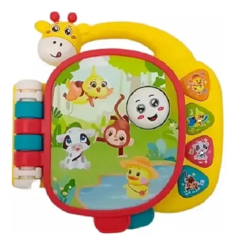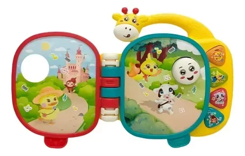 Este encantador librito con forma de jirafa es perfecto para los más pequeños. Cada página está llena de colores brillantes, mientras que la luz y los sonidos que emite al interactuar con él hacen la experiencia aún más divertida.