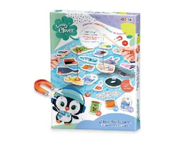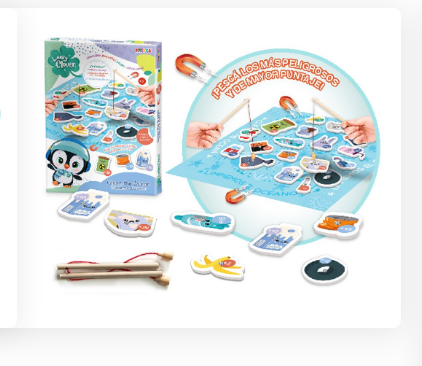 Incluye 1 tablero de juego, 20 piezas de goma EVA imantadas, 2 cañas de madera magnéticas.