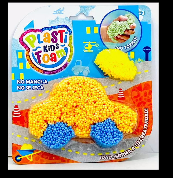- Colores: Vienen en colores surtidos. - Material: Similar a la plastilina, pero con una textura única compuesta por pequeñas bolitas de espuma que se adhieren entre sí. - Beneficios: No se seca ni mancha, ideal para horas de diversión creativa sin desorden.