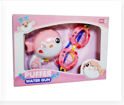 Set de pistola de agua en forma de pez con antiparras haciendo juego.